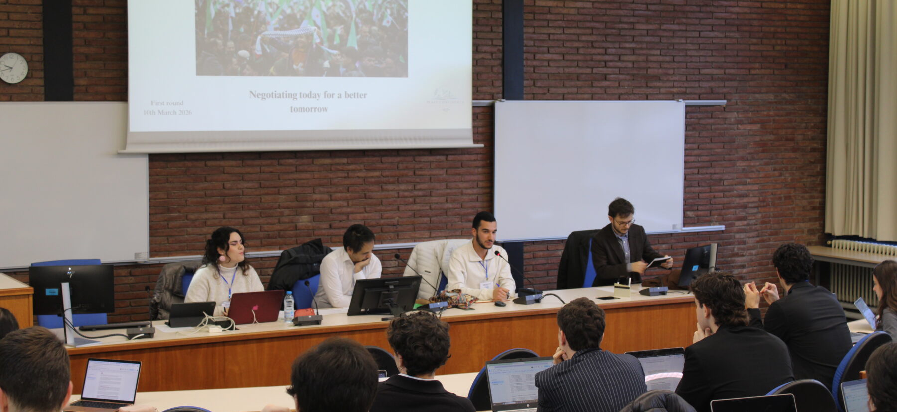 Durante los meses de marzo y abril, el alumnado del Máster Universitario en Diplomacia y Organizaciones Internacionales (titulación oficial de la Universitat de Barcelona) ha participado en una simulación de negociación diplomática internacional durante las clases del máster.